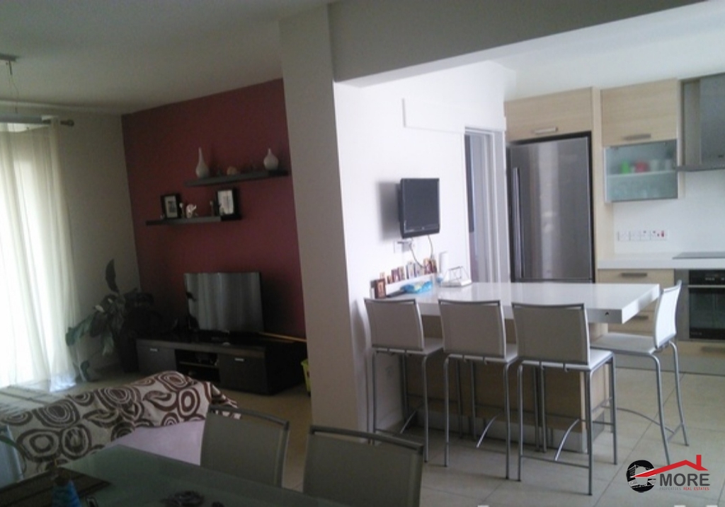 3 λεπτά από Πανεπιστήμιο Κύπρου, πλήρως επιπλωμένο με όλες τις ηλεκτρικές συσκευές, γρανίτες στην κουζίνα, κλιματιστικά παντού, υψηλής ποιότητας. Το διαμέρισμα ανεγέρθηκε το 2008, βρίσκεται στον 3ο όροφο, έχει συνολικό εμβαδό 85τμ και 20τμ καλυμμένες βεράντες, περιλαμβάνει 1 καλυμμένο παρκινγκ και 1 αποθήκη και βρίσκεται