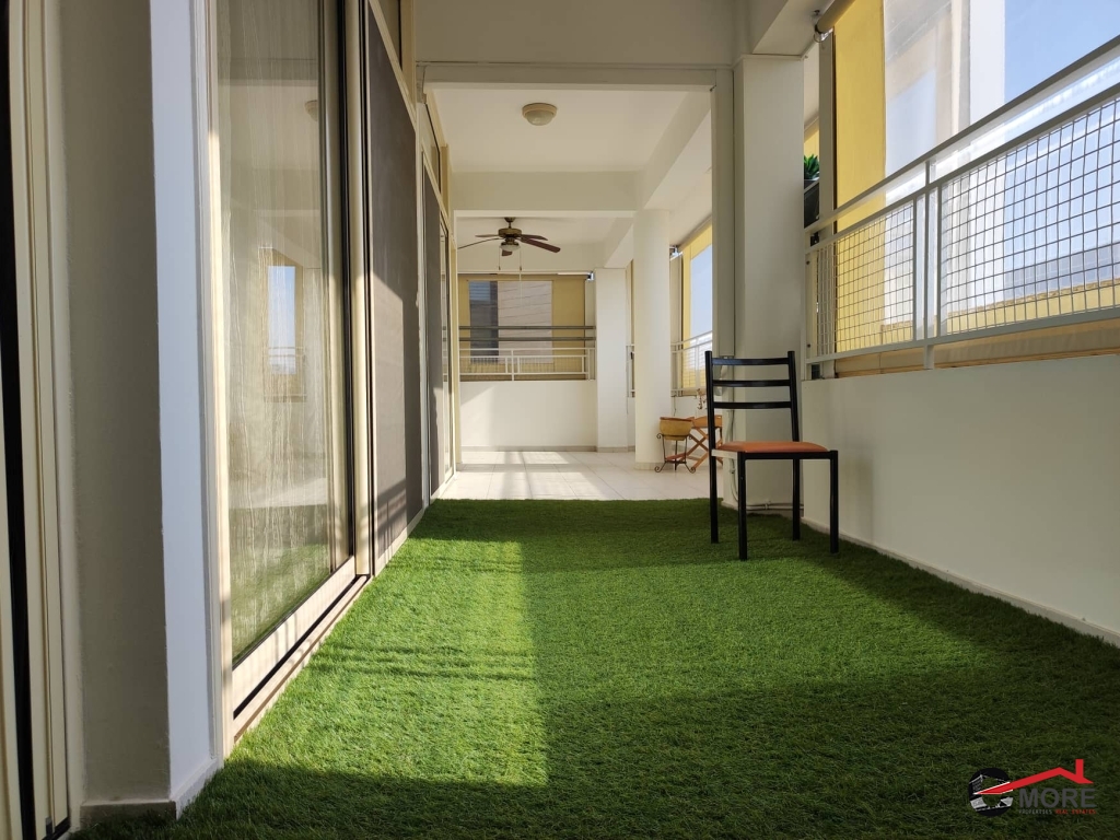• Το διαμέρισμα διαθέτει 3 w/c, 1 μπάνιο και 2 ντούζ. Υπάρχει μεγάλη βεράντα που βλέπει προς τον δρόμο. Διαθέτει Σίτες σε όλα τα παράθυρα και παραθυρόπορτες.