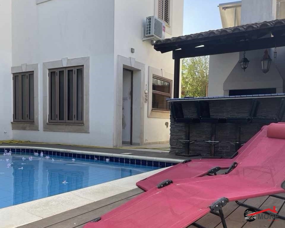 A detached three-bedroom house situated in the tranquil new-built area of Mammari just 10kms away from Nicosia airport. Nicosia mall is just 10kms away, Lidl and other facilities within a minute drive away. Its functional design boasts three bedrooms on the 1st level, including a master bedroom with a walk-in wardrobe, steam shower and bathtub. On the upper floor there are two more bedrooms with an additional bathroom, a study and a sitting room. On the lower level there is an open plan kitchen with all electrical appliances that include a dishwasher, a sitting room with a fireplace, a laundry room with washing machine and a tumble drier. On the lower level there's also a living room and a dining room with a second fire place facing the backyard and the pool, with a WC and a small storage room. In the backyard you'll find a sitting and a barbecue area. It is partly furnished with a gas heater and a/c units throughout the house. There's also a house alarm. For more information please contact 99 489291, Andreas Karamanis.