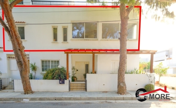 • Το διαμέρισμα βρίσκεται στο δυτικό τμήμα του 1ου ορόφου και ολόκληρου του 2ου ορόφου του κτηρίου και περιλαμβάνει στον 1ο όροφο σαλόνι, τραπεζαρία, κουζίνα και τουαλέτα επισκεπτών και στον 2ο όροφο ένα μπάνιο με τουαλέτα, τρία υπνοδωμάτια ( το master ensuite και ντουλάπα), λεβητοστάσιο, αποθήκη, πλυσταριό και μια μικρή σκεπαστή βεράντα και μια ακάλυπτη βεράντα (εν μέρει καλυμμένη με πέργκολα) με μπάρμπεκιου. Οι επενδύσεις δαπέδου είναι κατασκευασμένες από κεραμικά πλακίδια εκτός από τα υπνοδωμάτια όπου έχει τοποθετηθεί παρκέ (laminated). Οι πάγκοι εργασίας της κουζίνας είναι από γρανίτη, με ξύλινα ντουλάπια. Τα κουφώματα είναι διπλά τζάμια από κουφώματα αλουμινίου και επενδύσεις αλουμινίου εξωτερικά. Το διαμέρισμα εξυπηρετείται από κεντρική θέρμανση και τζάκι στο σαλόνι, καθώς και πρόνοια για μονάδες air-conditioner. Διαθέτει και χώρο στάθμευσης.