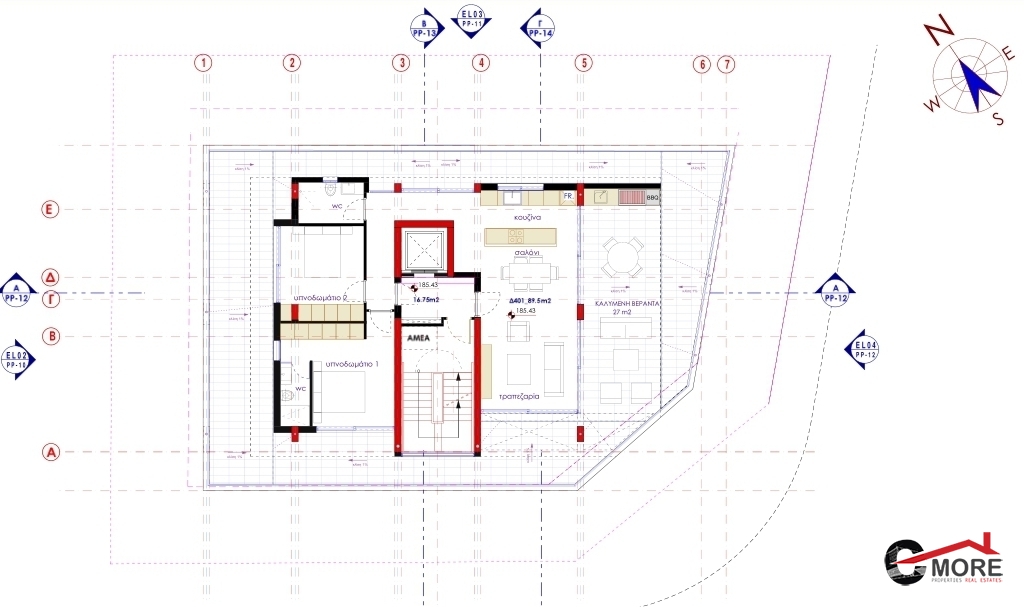 -Τhe external walls are made from 33mm thermal brickwork, in compliance with the local regulations of