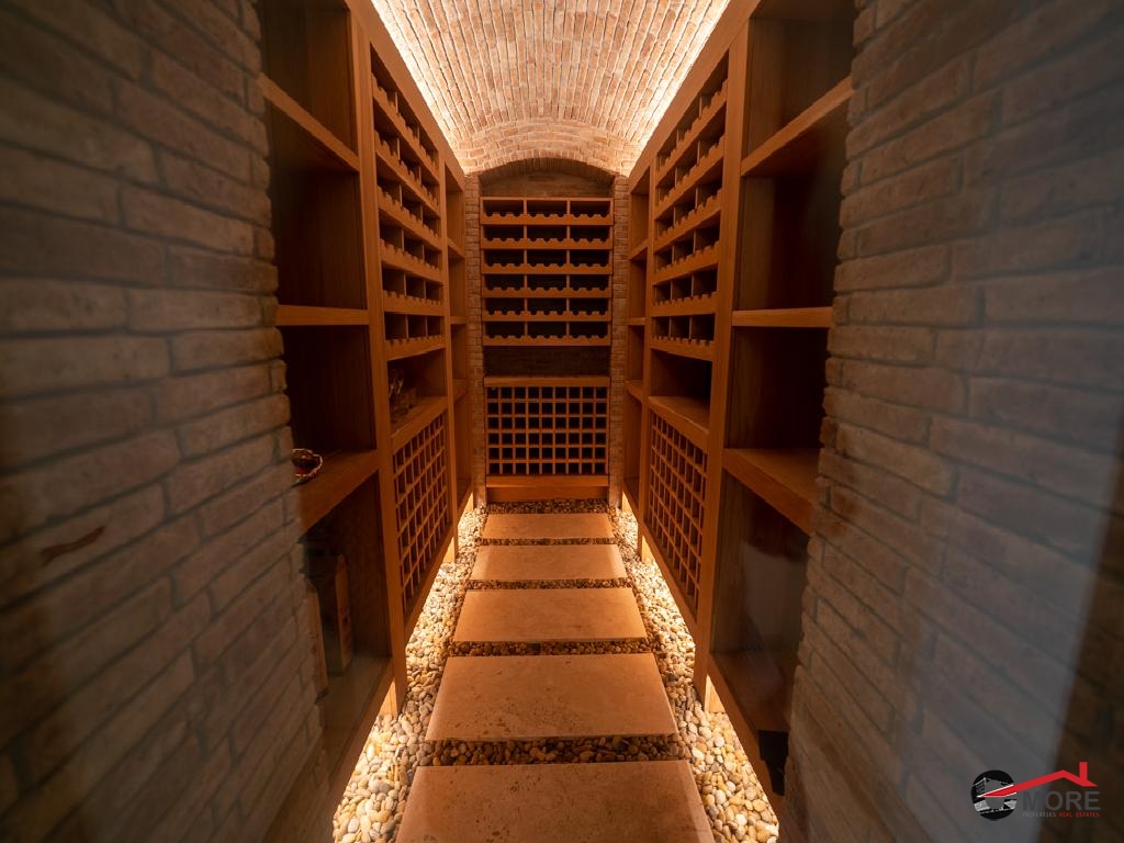 • Στο υπόγειο διαθέτει δωμάτιο υπηρεσίας με κουζίνα, αποχωρητήριο με ντους, δωμάτιο home cinema, τραπεζαρία, γυμναστήριο, δωμάτιο σάουνας, αποθήκη κήπου, server room, κάβα και μηχανοστάσιο.