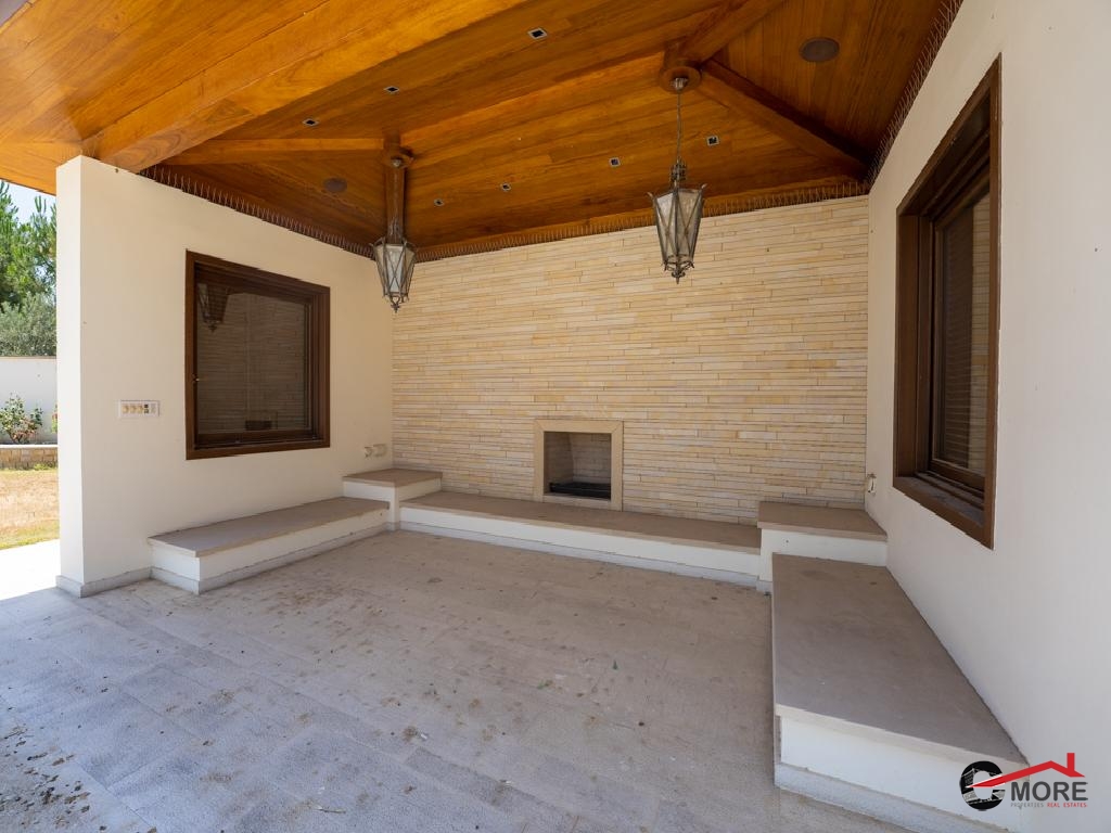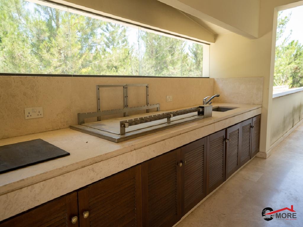 • Εξωτερικά διαθέτει βοηθητική οικοδομή, ψησταριά, πισίνα, κήπο και καλυμμένο χώρο στάθμευσης για 4 αυτοκίνητα. Η βοηθητική οικοδομή αποτελείται από καθιστικό, κουζίνα και αποχωρητήριο με ντους στο ισόγειο.