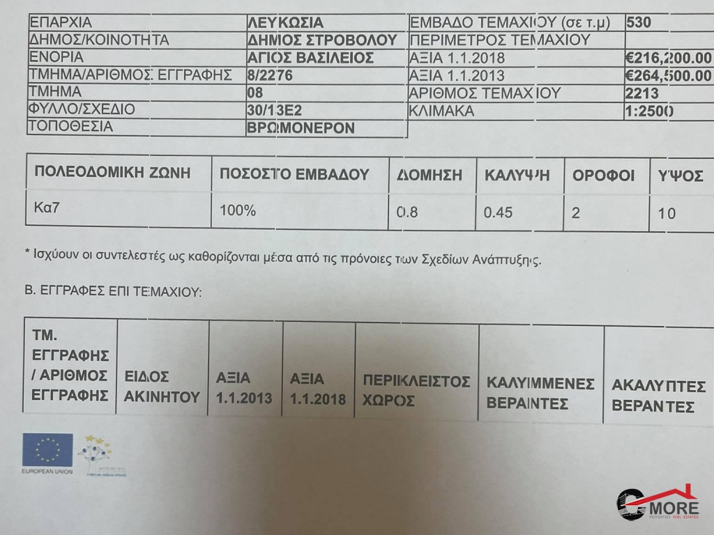 Πωλείται Οικόπεδο 530 τ.μ στo Στρόβολο-Άγιο Βασίλειο με Σ.Δ 80% For salePlot