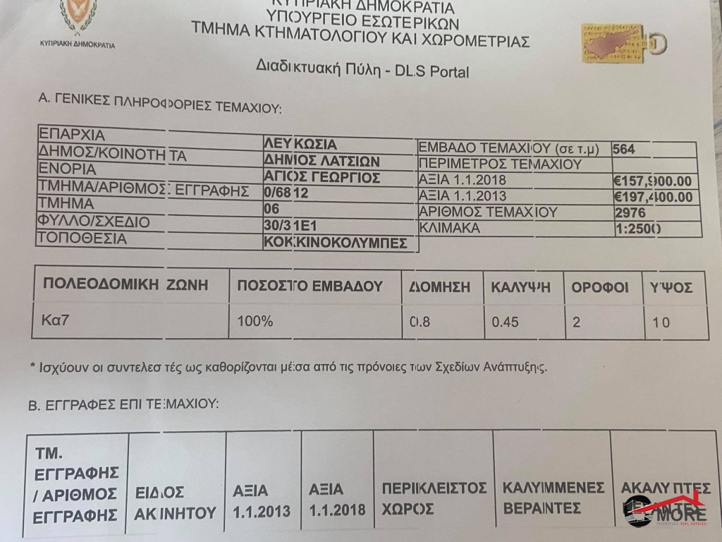 Πωλείται οικόπεδο στον Δήμο Λατσιών 80% συντελεστή Δόμισης Εμβαδό γης: 564 τ.μ. ΤΙΜΗ €179,000 ΓΙΑ ΠΕΡΙΣΣΟΤΕΡΕΣ ΠΛΗΡΟΦΟΡΙΕΣ ΕΠΙΚΟΙΝΩΝΗΣΤΕ ΣΤΟ 96595536