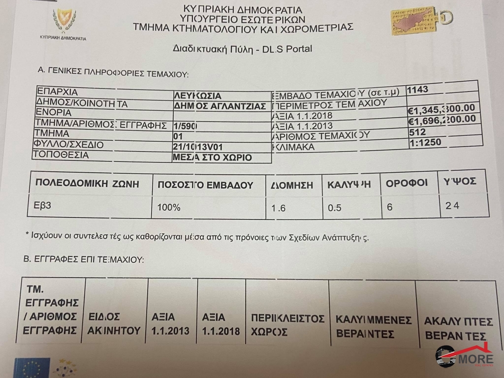 Πωλείται Εμπορικό τεμάχιο στην Αγλαντζιά Συνολικό́ εμβαδόν : 1143 τ.μ. Τιμή €990,000 ΓΙΑ ΠΕΡΙΣΣΟΤΕΡΕΣ ΠΛΗΡΟΦΟΡΙΕΣ ΕΠΙΚΟΙΝΩΝΗΣΤΕ ΣΤΟ 99477604 AA310E/AM1097